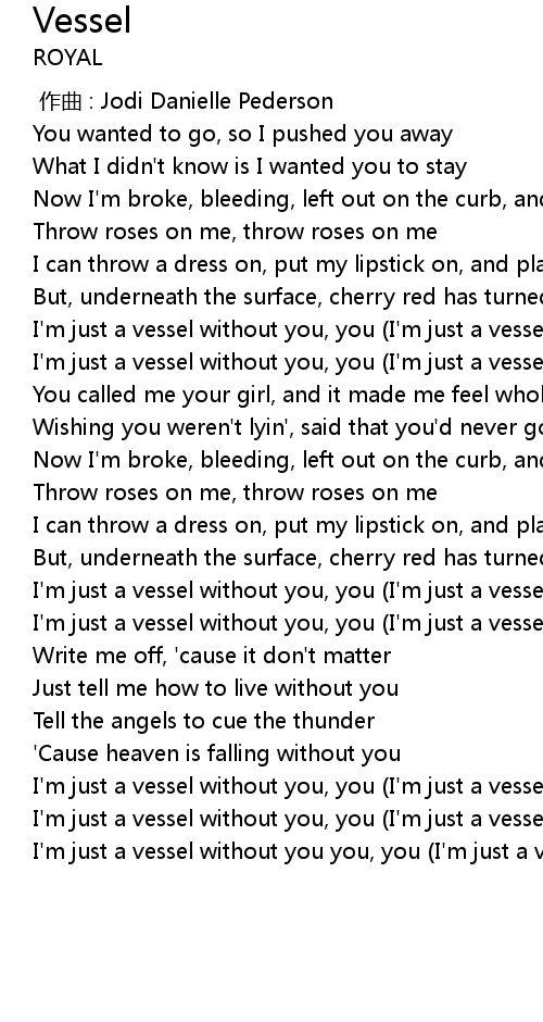 | [02:51.15] | I'm just a vessel without you you, you (I'm just a vessel without you) |