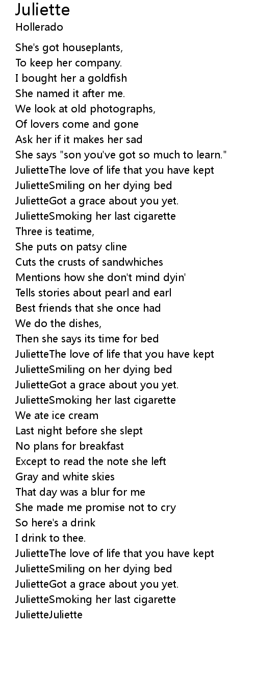 JulietteGot a grace about you yet. |