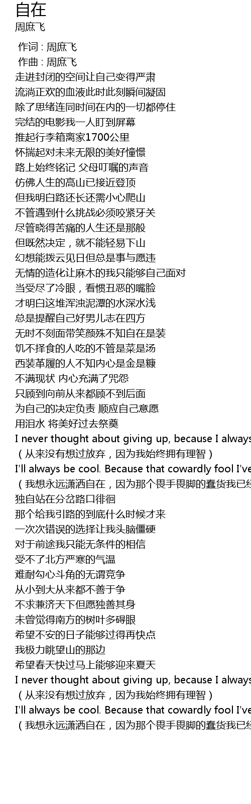 | [01:24.432] | wei zi ji de jue ding fu ze shun ying zi ji yi yuan |
