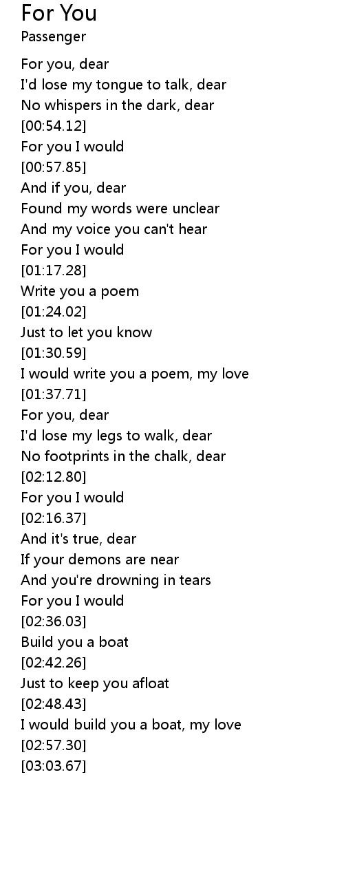 | [00:44.19] | I'd lose my tongue to talk, dear |