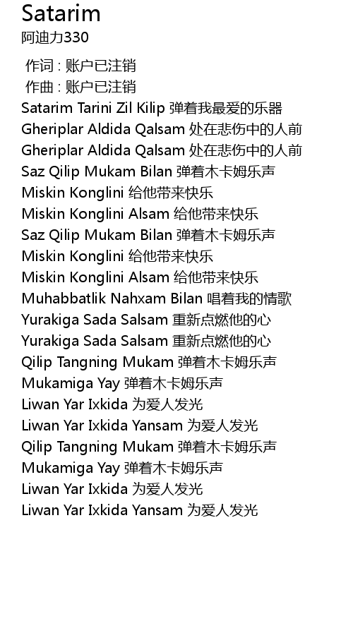 | [02:47.290] | Muhabbatlik Nahxam Bilan chàng zhe wǒ de qíng gē |