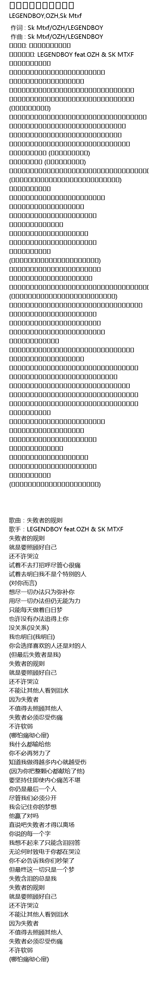 | [00:18.50] | 歌手:LEGENDBOY feat.OZH & SK MTXF |