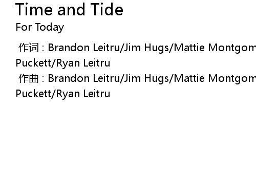 | [00:00.000] | 作曲 : Brandon Leitru/Jim Hugs/Mattie Montgomery/David Puckett/Ryan Leitru |