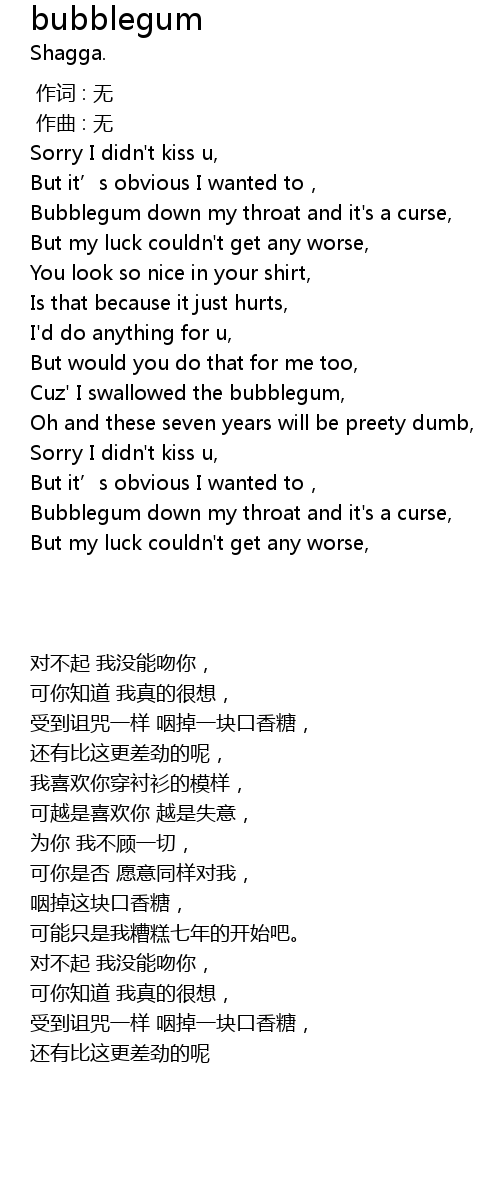 | [01:10.79] | Cuz' I swallowed the bubblegum, |