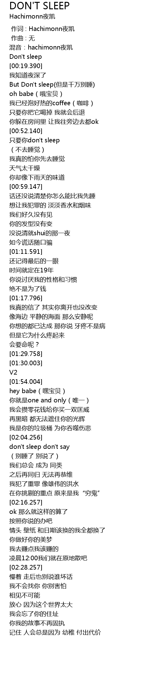 | [00:18.386] | Don' t sleep |