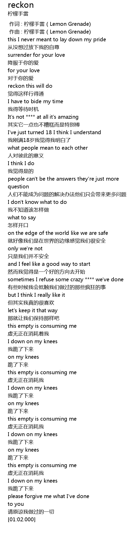 | 歌曲 | reckon |