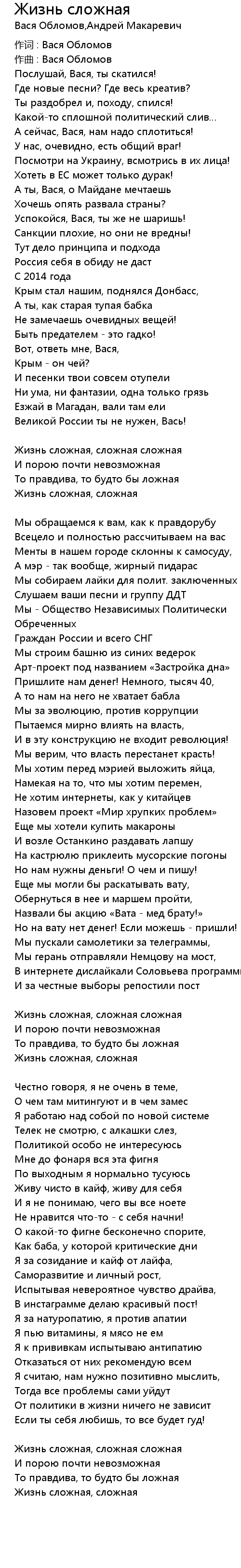 Жизнь сложная 歌词