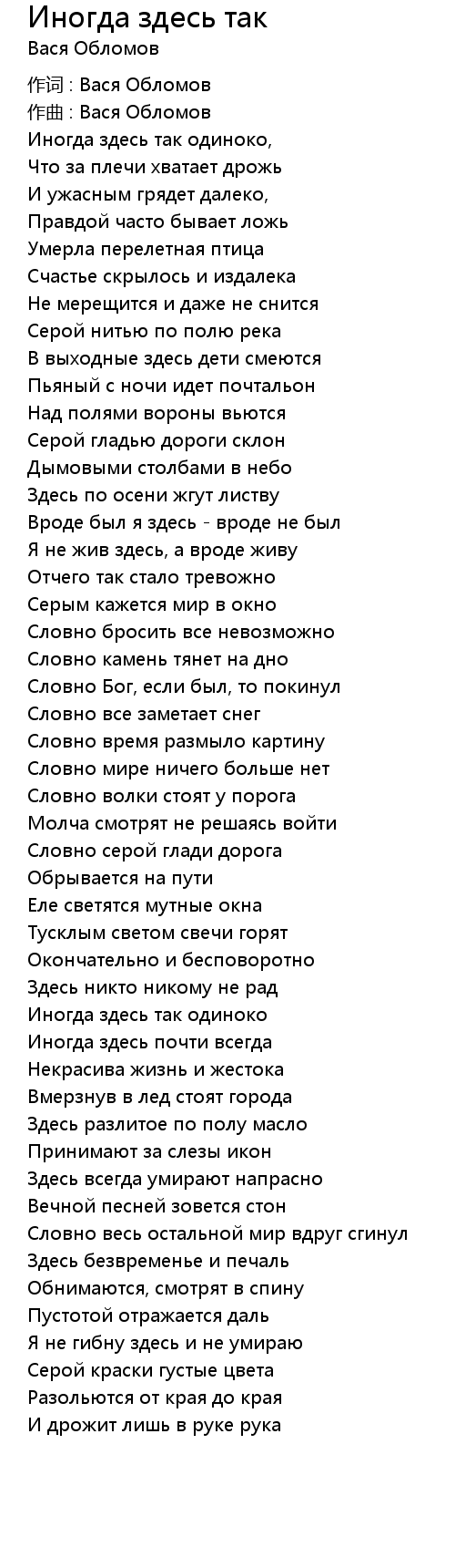 作词 : Вася Обломов |
