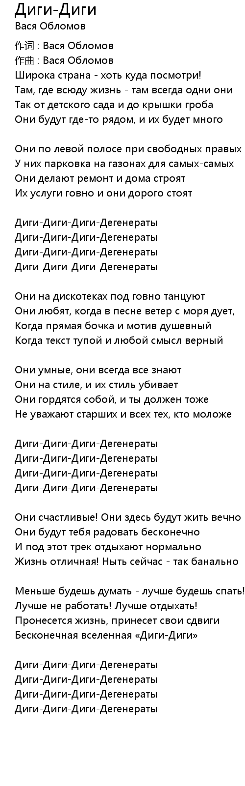 作词 : Вася Обломов |