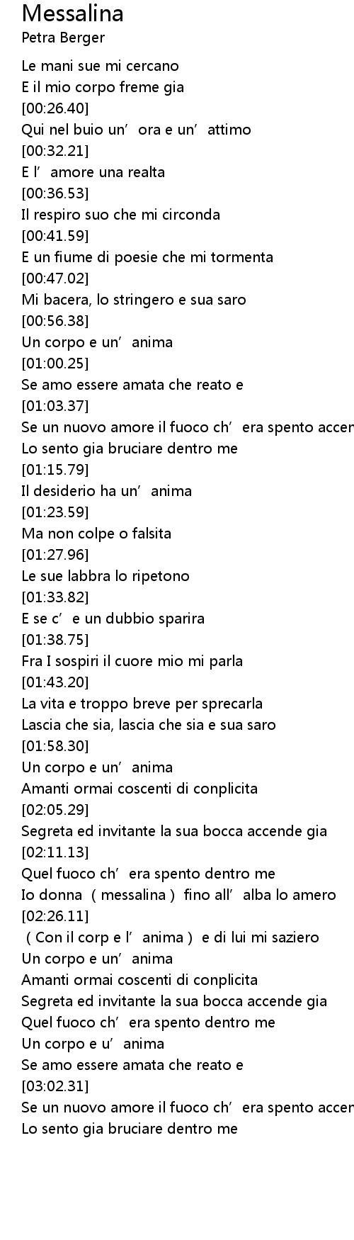| [02:17.81] | Io donna messalina fino all' alba lo amero |