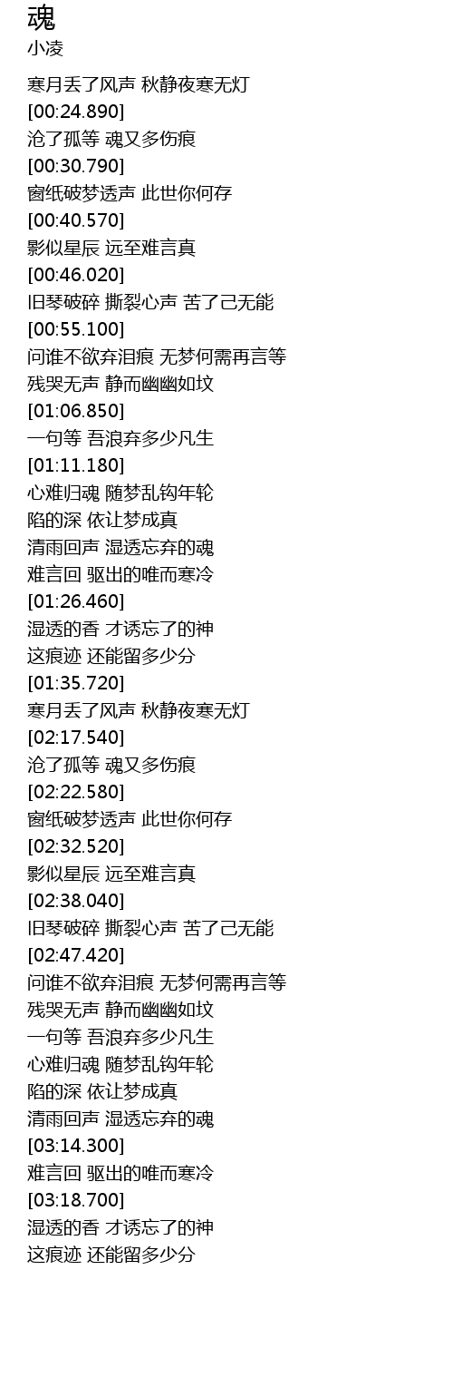 | [00:25.800] | 沧了孤等 魂又多伤痕 |