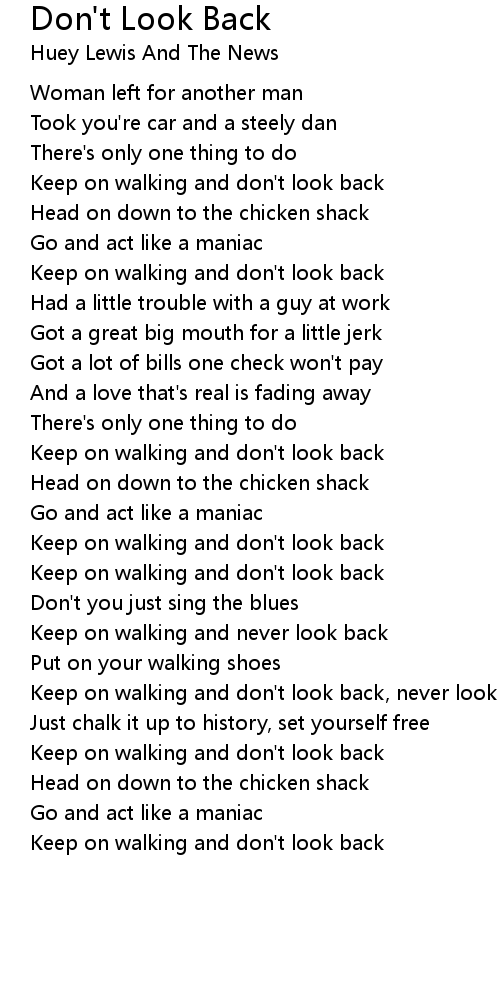 Keep on walking and don't look back, never look back |