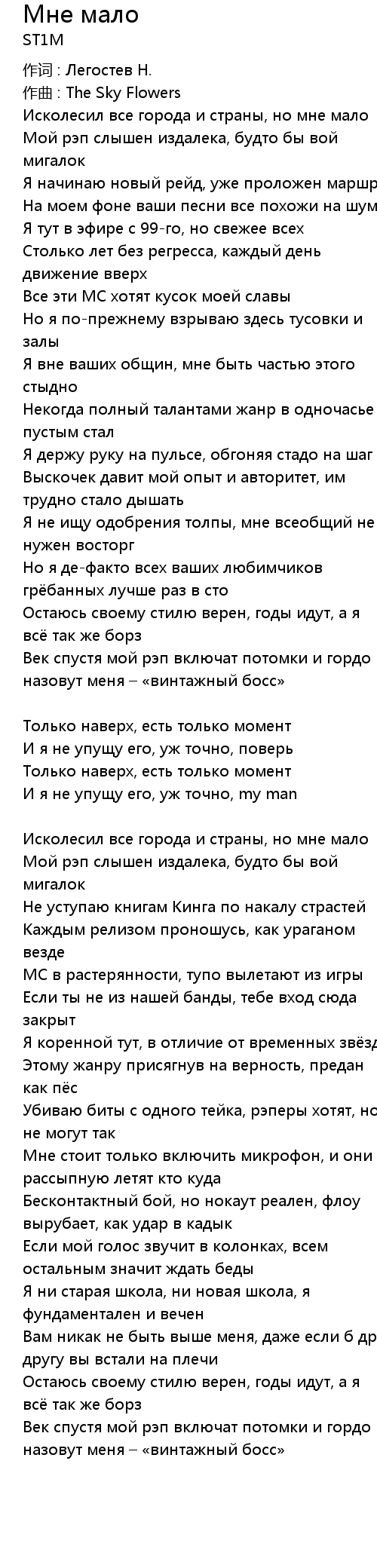 Мне мало 歌词