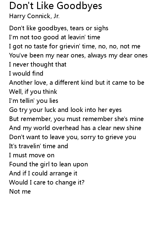 Don't like goodbyes, tears or sighs |