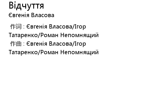 | [00:00.000] | 作词 : Євгенія Власова/Ігор Татаренко/Роман Непомнящий |