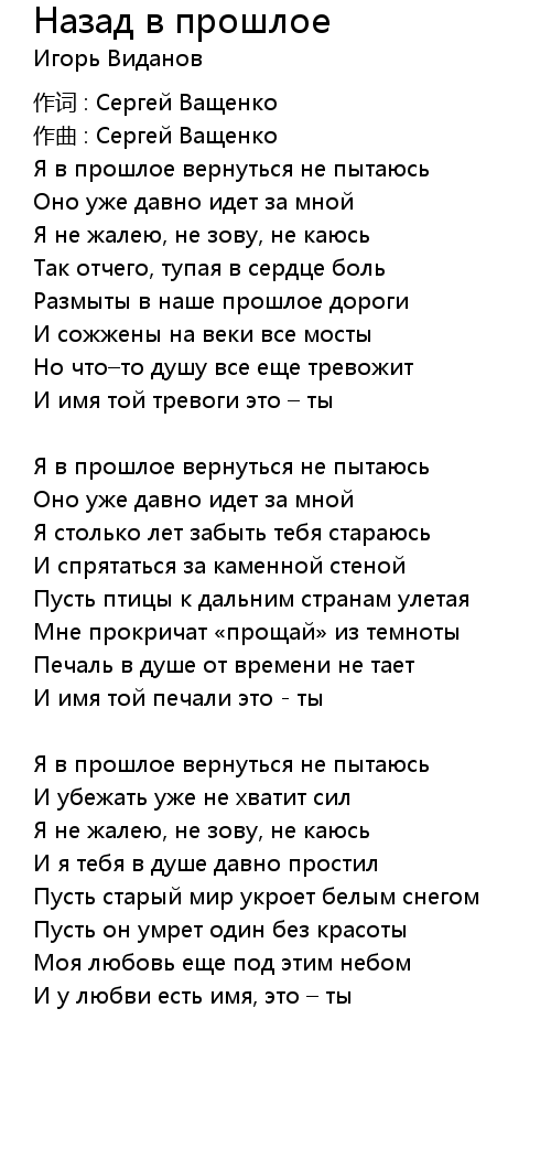 Назад в прошлое 歌词