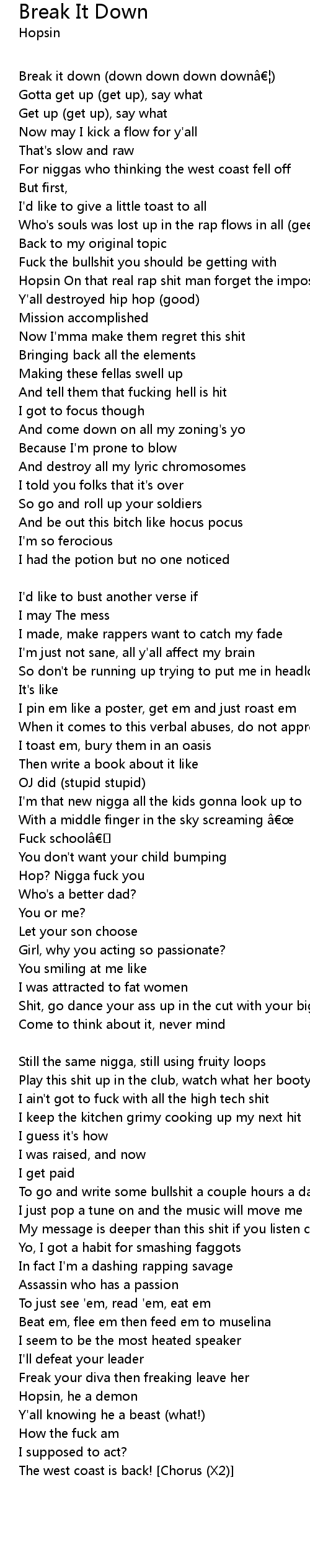 | Yo, I got a habit for smashing faggots | |