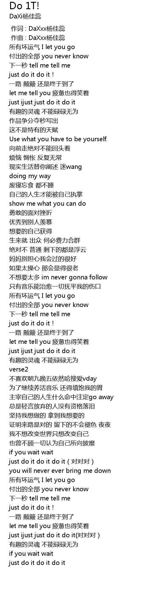 | [02:10.940] | just do it do it do it duì duì duì |