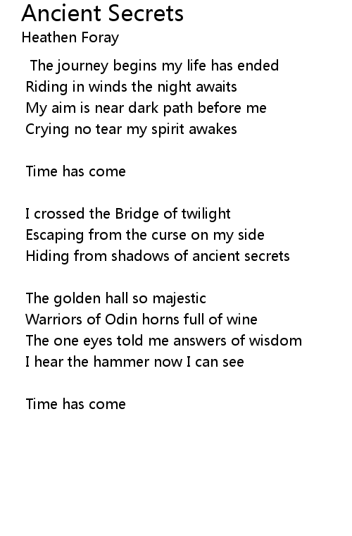 | 歌曲 | Ancient Secrets |