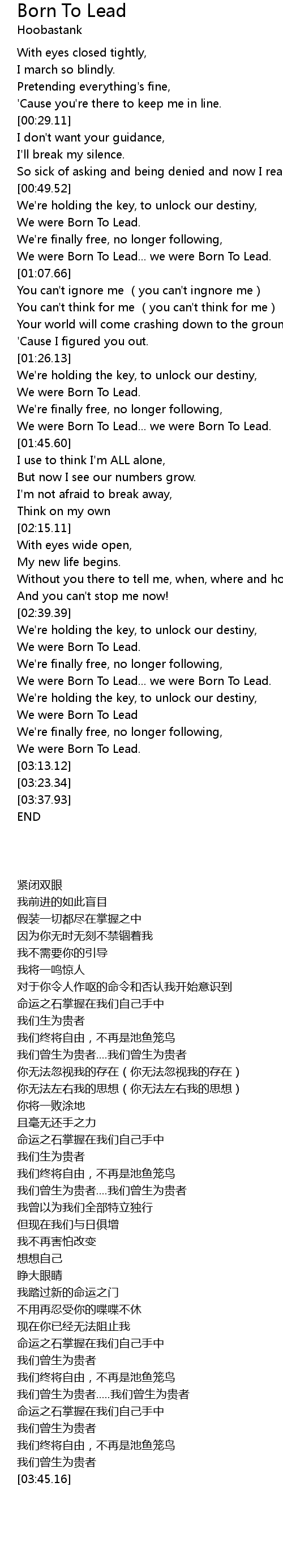 | [01:02.90] | We were Born To Lead... we were Born To Lead. |