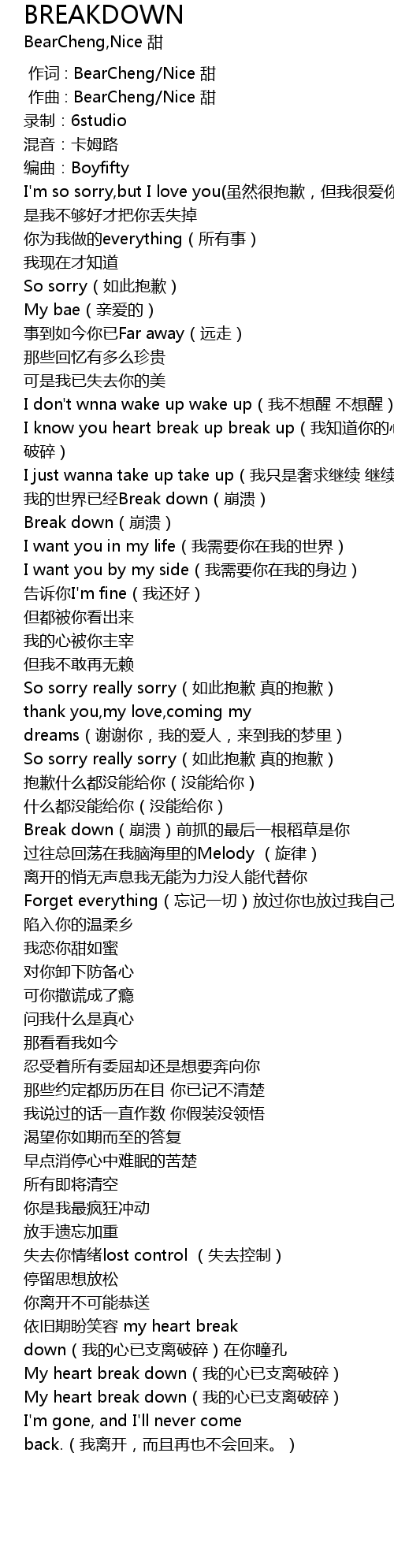 | [00:00.000] | 作词 : BearCheng/Nice 甜 |