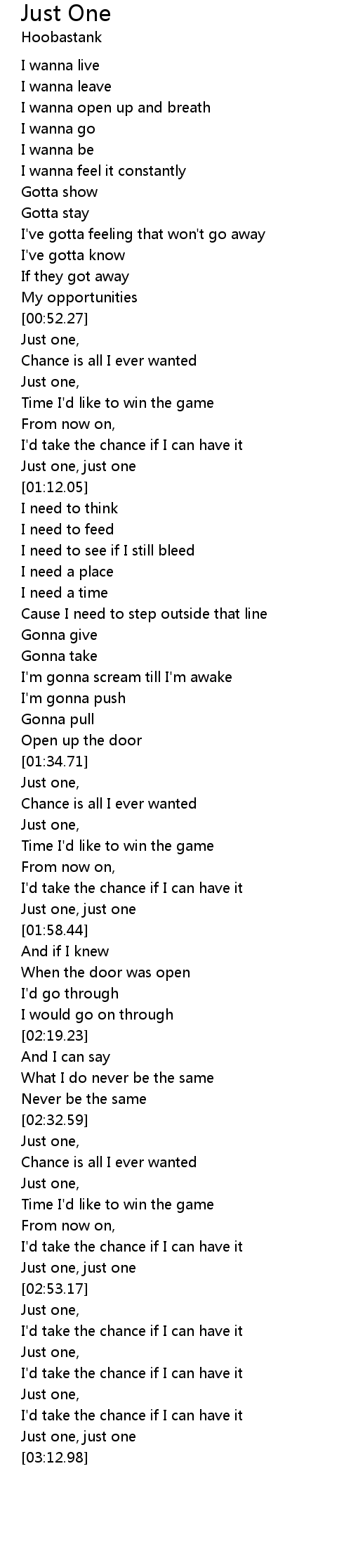 Chance is all I ever wanted |