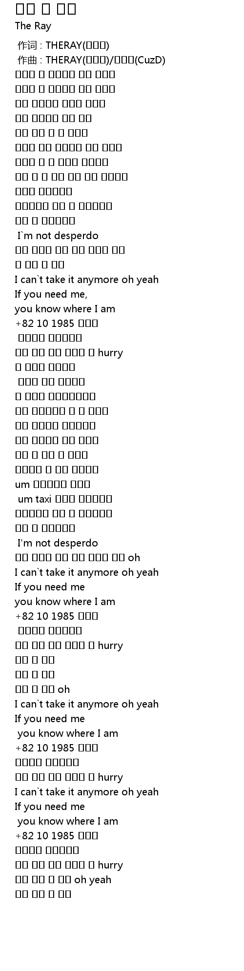 | [02:59.944] | 지금 바로 내게 전화좀 해 hurry |