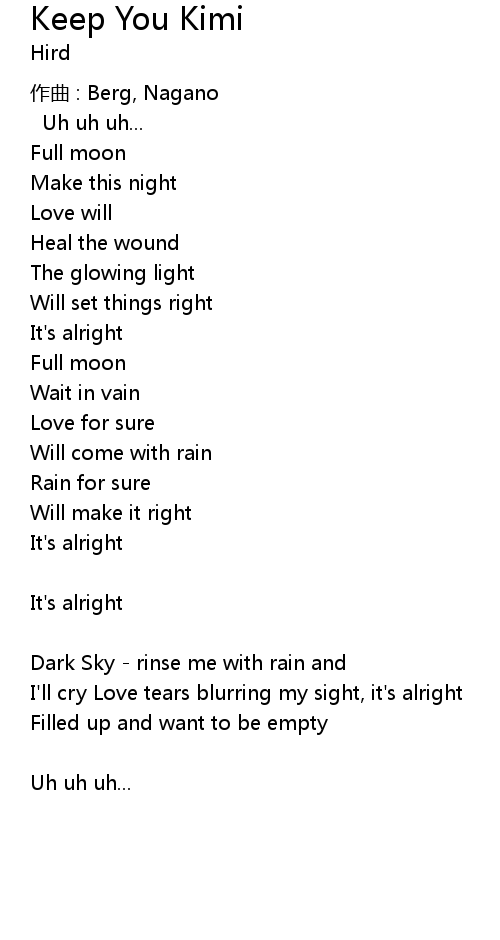 | I' ll cry Love tears blurring my sight, it' s alright | |