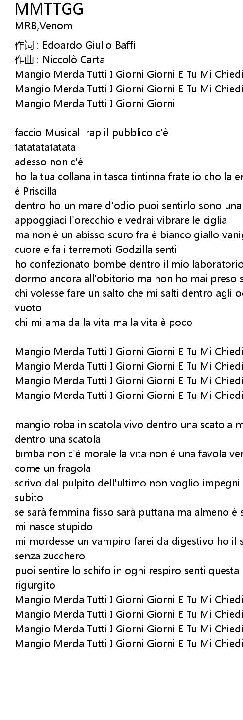 | Mangio Merda Tutti I Giorni Giorni E Tu Mi Chiedi Come come | |