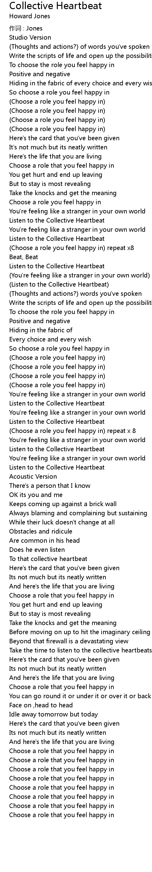 | (Listen to the Collective Heartbeat) | |