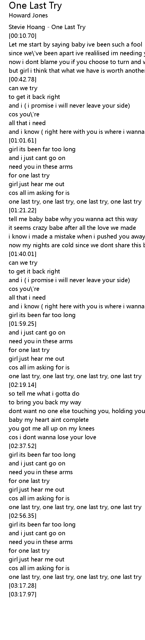 [03:10.64] one last try, one last try, one last try, one last try