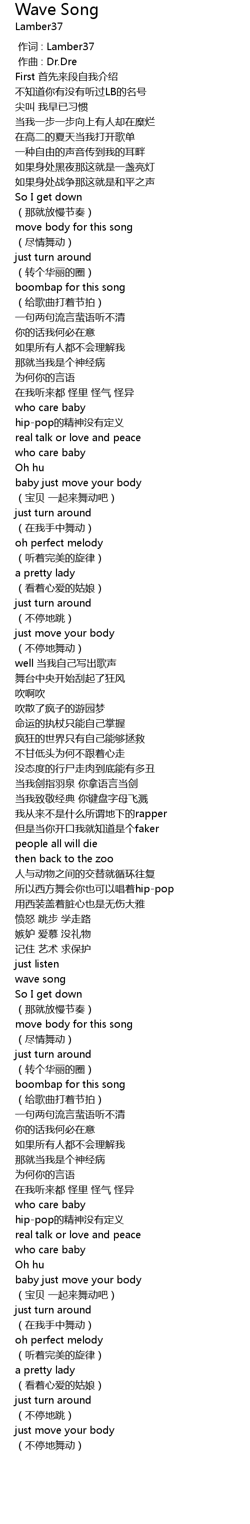 | [00:01.000] | zuo qu : Dr. Dre |