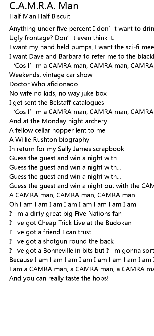| ' Cos I' m a CAMRA man, CAMRA man, CAMRA man | |