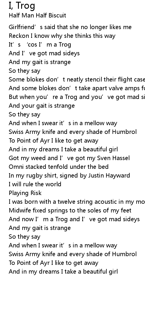 | And now I' m a Trog and I' ve got mad sideys | |