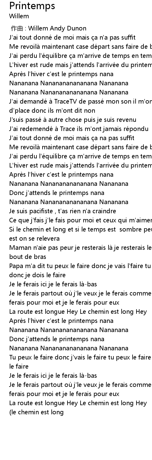 | [01:05.500] | Après l'hiver c'est le printemps nana |