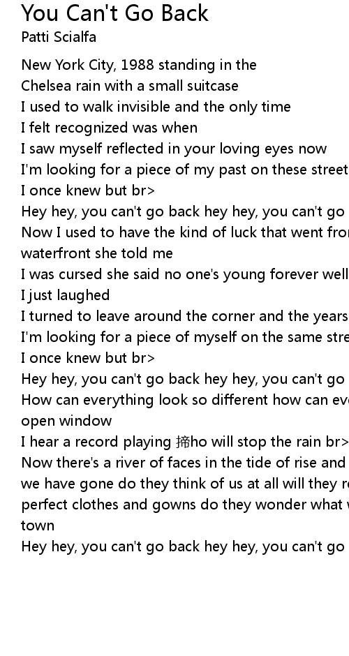 | Hey hey, you can't go back hey hey, you can't go back | |
