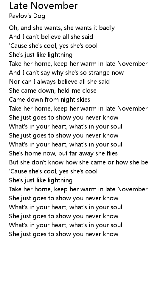 Take her home, keep her warm in late November |