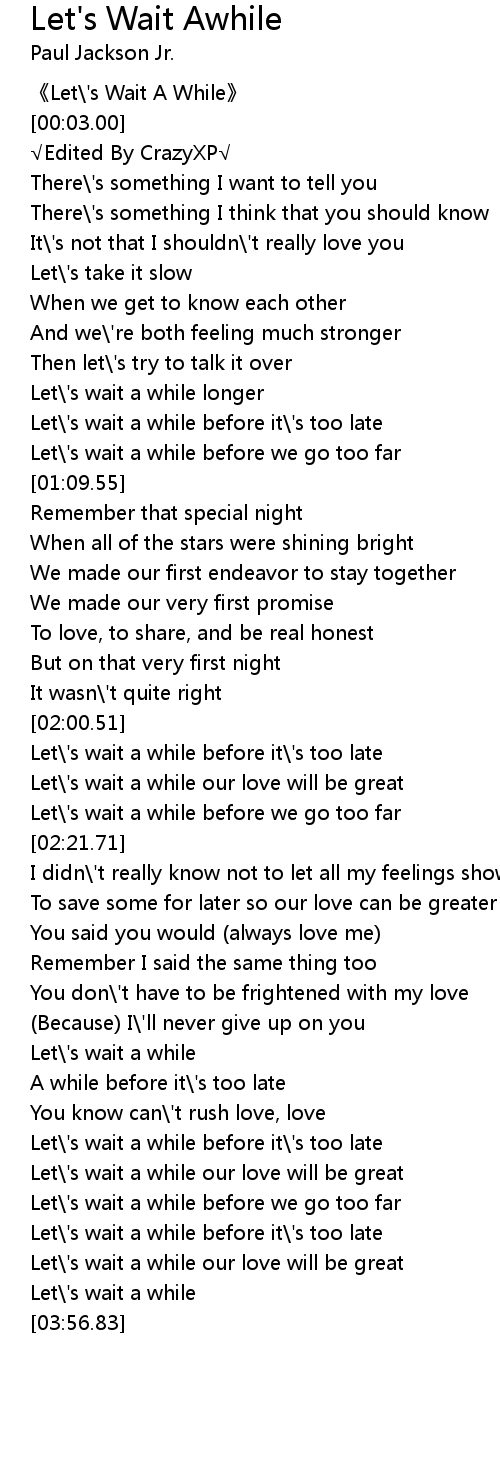 | [00:00.00] | 《Let\'s Wait A While》 |