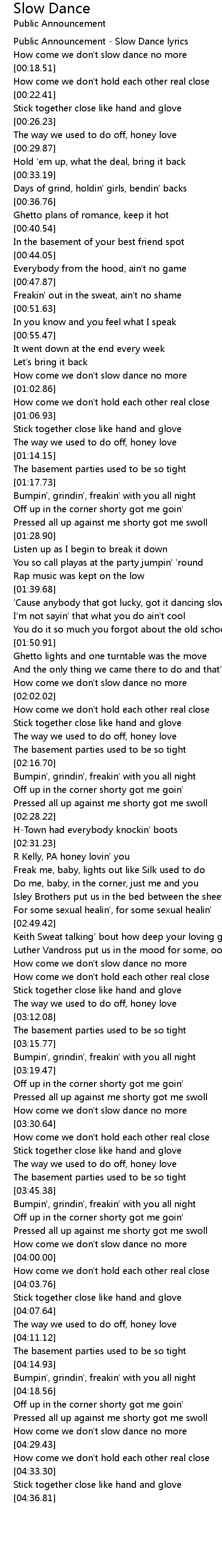 Public Announcement - Slow Dance lyrics |