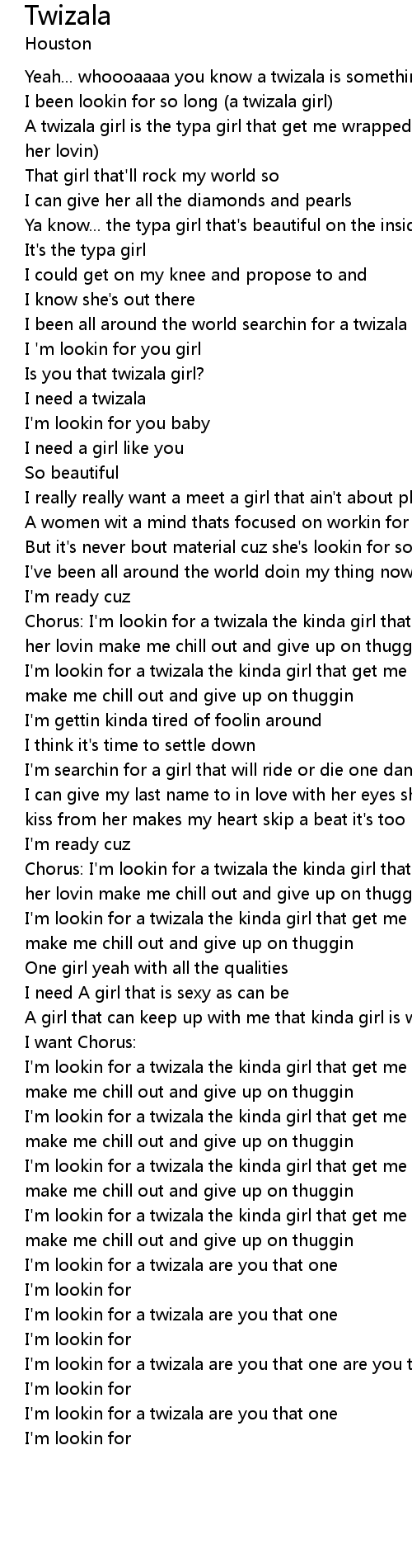 I been lookin for so long (a twizala girl) |