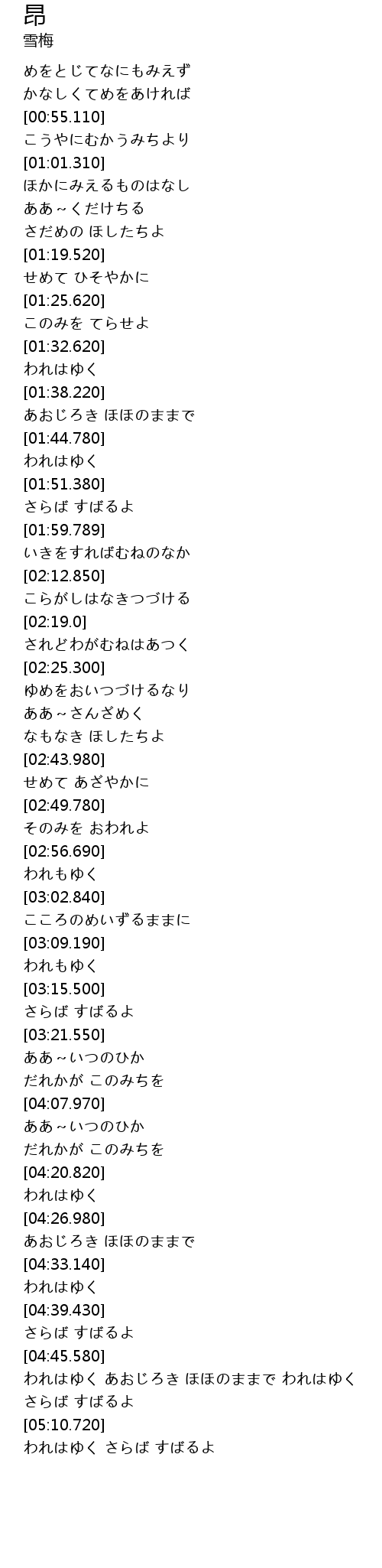 | [05:11.820] | われはゆく さらば すばるよ |