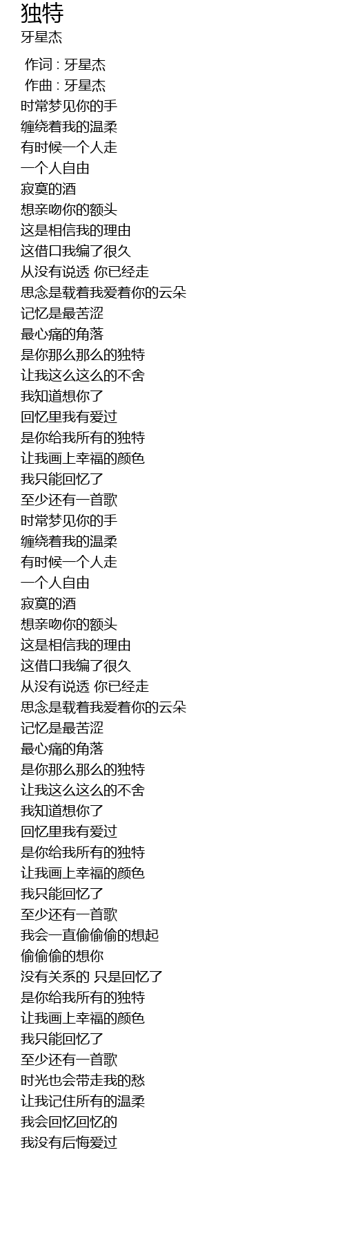 | [01:31.941] | shì nǐ gěi wǒ suǒ yǒu de dú tè |
