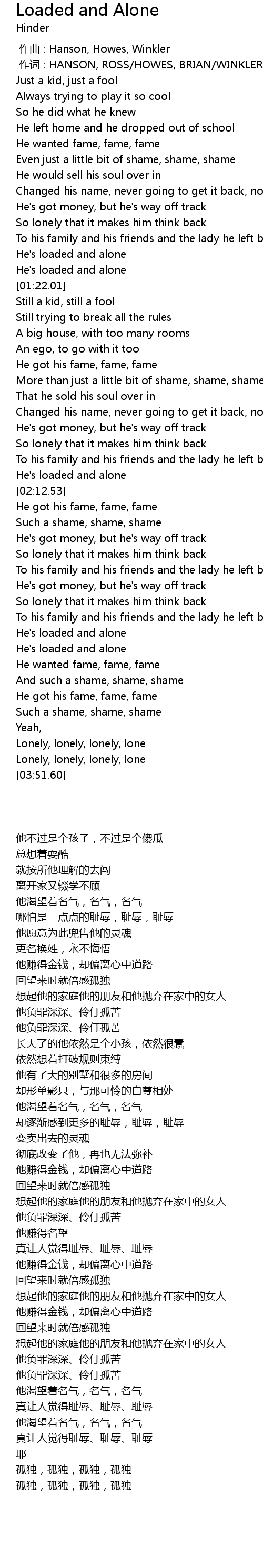 | [03:41.63] | Lonely, lonely, lonely, lone |