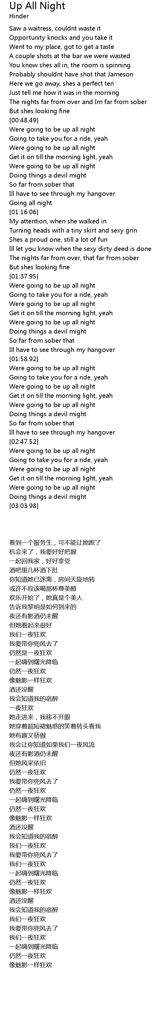 Up All Night 歌词
