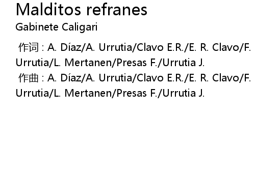 | [00:00.000] | zuò cí : A. Dí az A. Urrutia Clavo E. R. E. R. Clavo F. Presas J. Urrutia L. Mertanen Presas F. Urrutia J. |