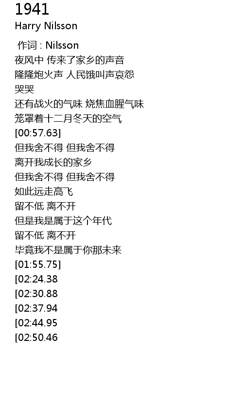| [00:00.00] | 作词 : Nilsson |