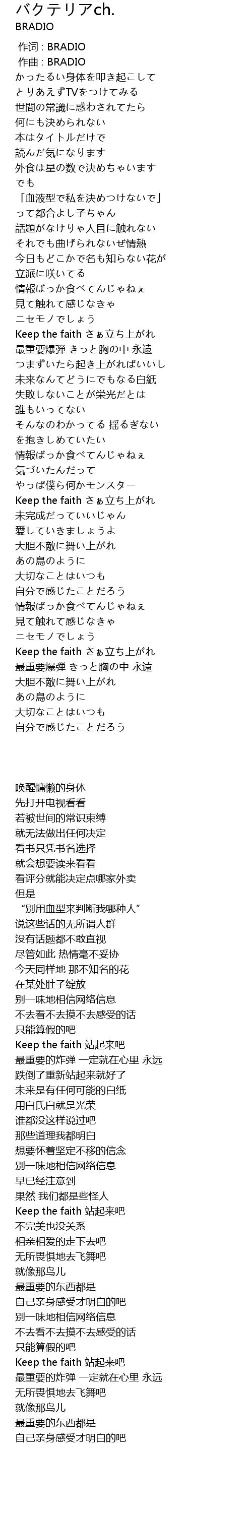 | 歌曲 | バクテリアch. |