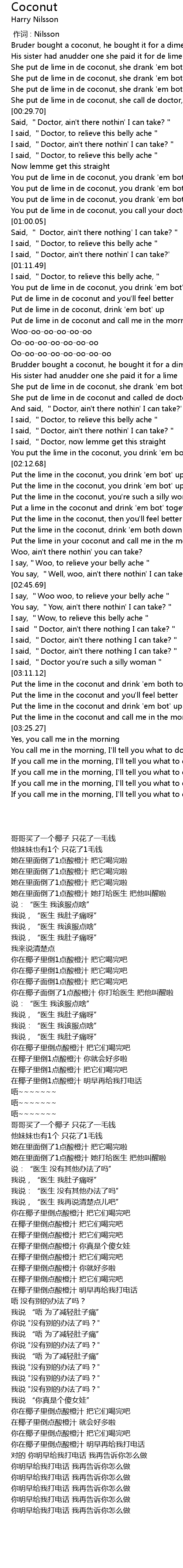 | [00:21.45] | She put de lime in de coconut, she drank 'em bot' up |