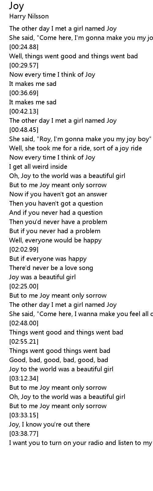 The other day I met a girl named Joy |