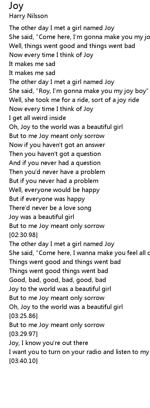 The other day I met a girl named Joy |